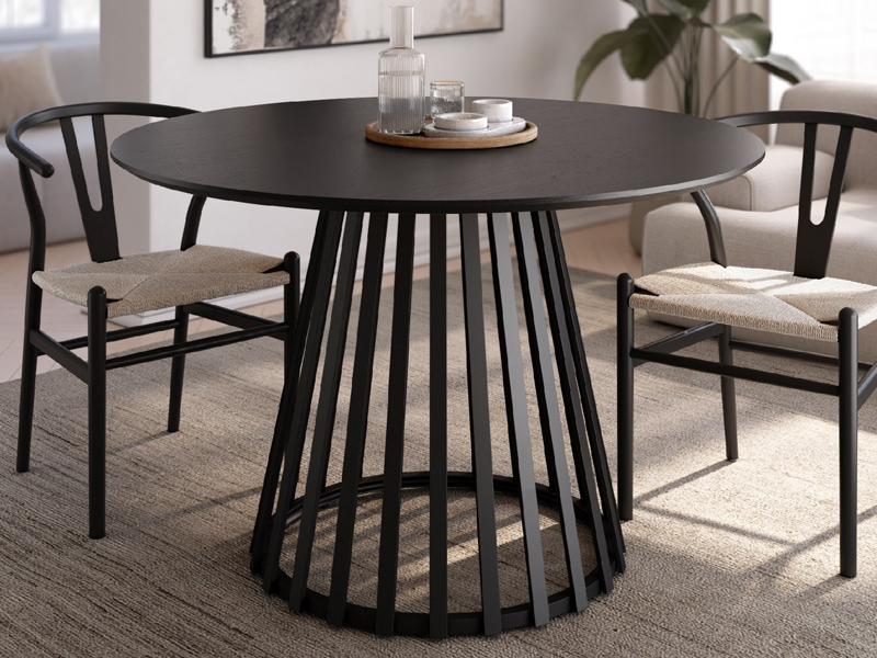 TAULA MENJADOR RODONA AMB PEU METÁL-LIC CENTRAL