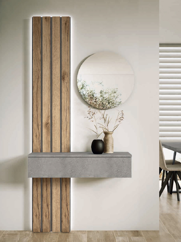 RECIBIDOR CON PANEL ROBLE Y GRIS