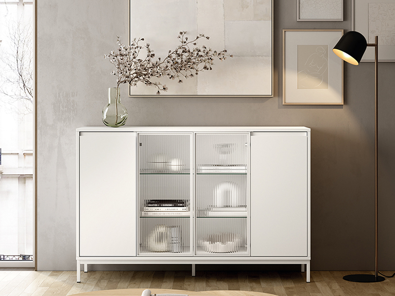 BUFFET CON PATAS Y PUERTAS ABATIBLES DE CRISTAL