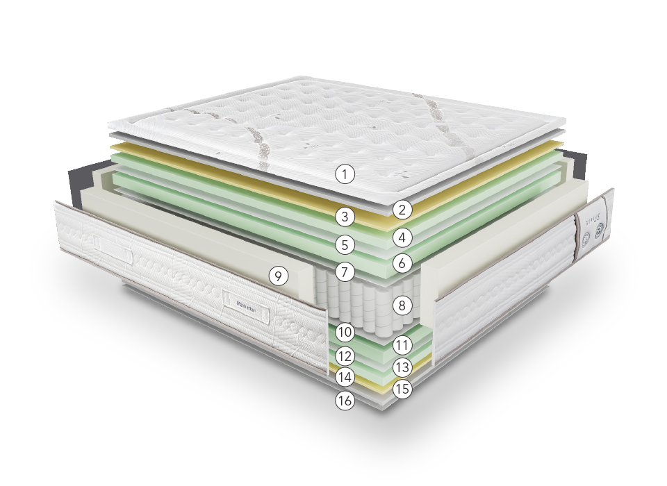 Colchón con muelles ensacados con viscosoja de alta densidad.