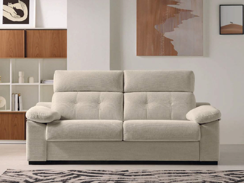 Sofá cama de 208 x 100 de profundidad, con sistema de apertura italiano. Almohadas del asiento de espuma poliuretano de 33 kg y respaldos mezcla de fibra hueca siliconada. Desenfundable asiento, respaldo y brazos. Colchón de 140 x 190 x 14 cm. de goma espuma 30 kg acolchado, opción de hacerlo con viscoelástica-Hr.